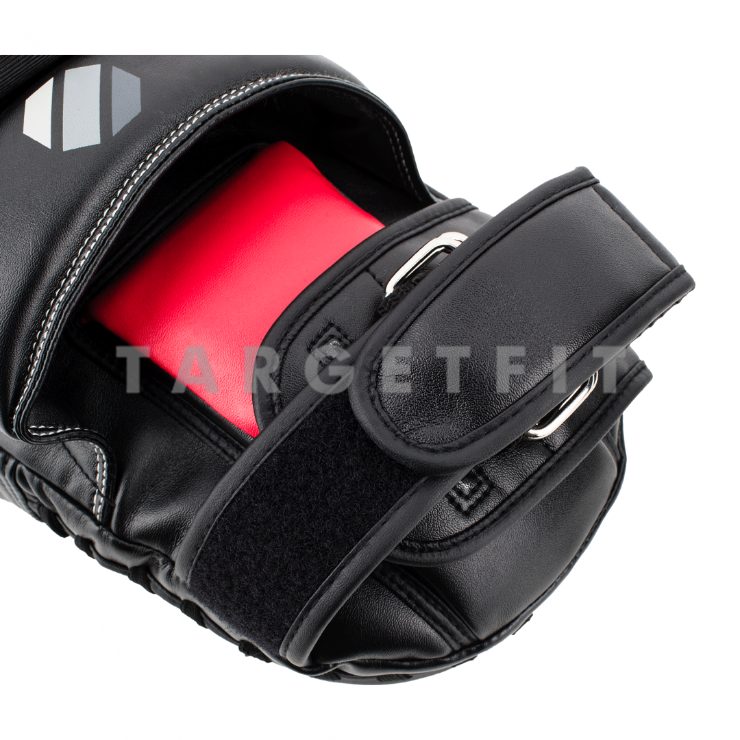 • Long focus mitts for working all strikes (kicks and punches)